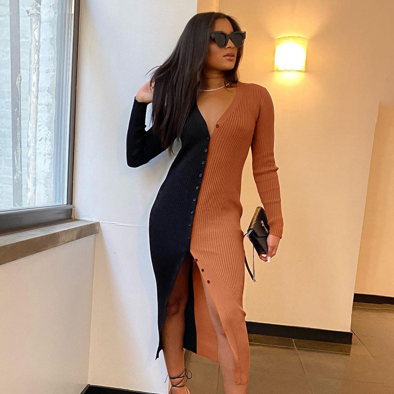 InsStreet Our Abril Colorblock Button Front Knit Midi Dress is ready for a party! This trendy tan and black colorblock dress is fitted and flattering. Finished with front button closures. Styled with the Perfect Hoop Earrings. Compass Coin Necklace. Shayne Gold Link Necklace. Elena Tennis Necklace. Chic Crossbody Chain Pouch Bag. and Whimsy Heel.