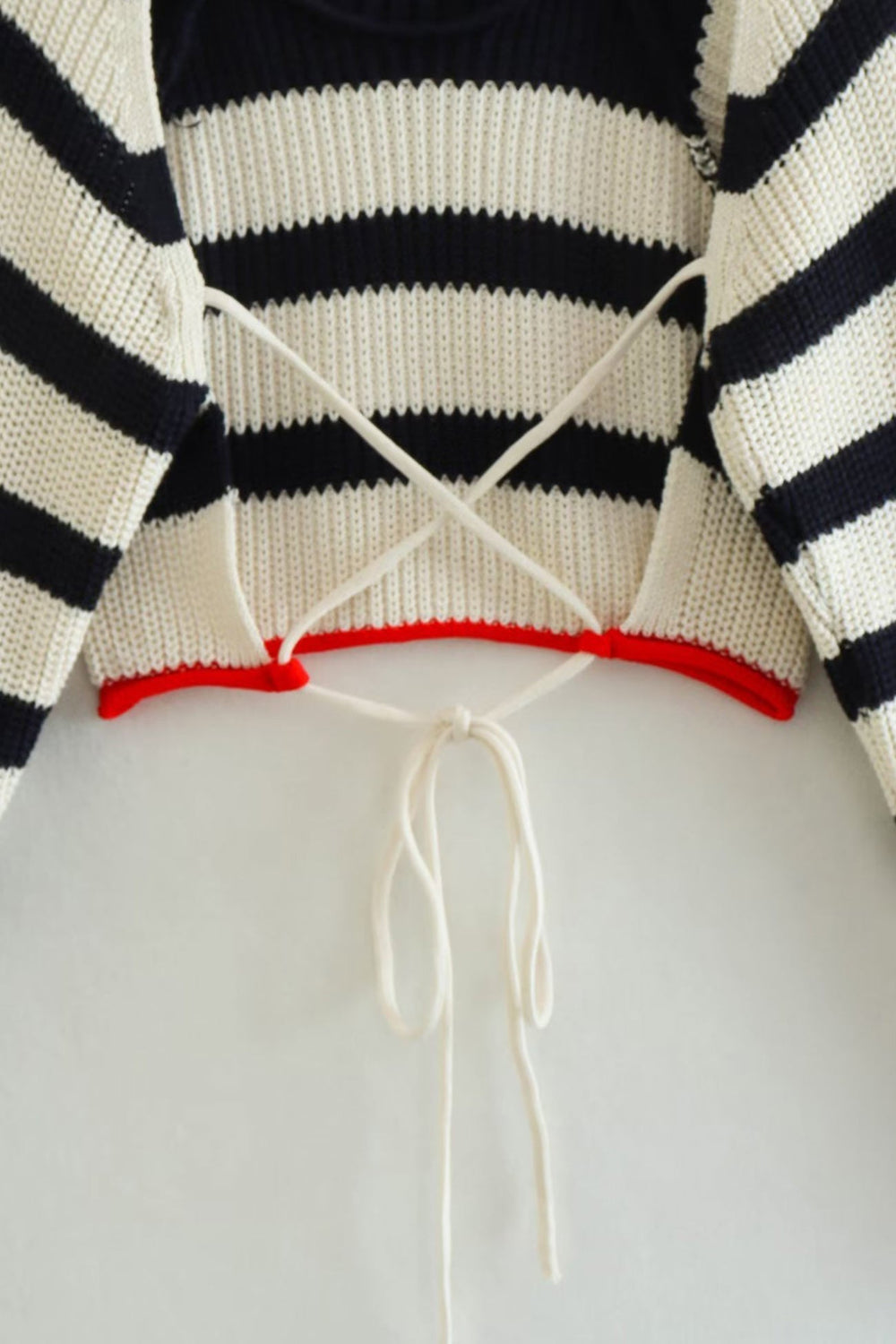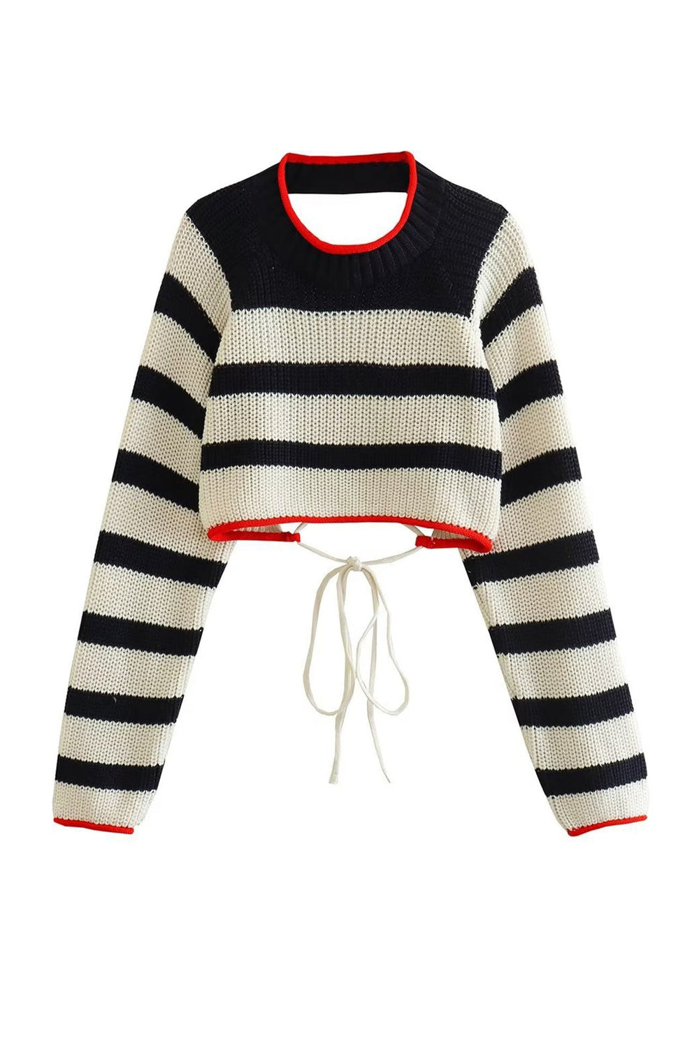 Decrease quantity for Contrast Striped Tie-back Sweater