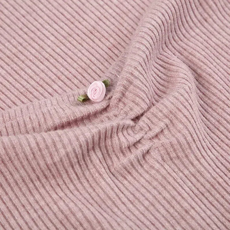 This charming pink corduroy mini dress offers a flattering fit with its long sleeves and ruched bust. Perfect for a cute and stylish look, it combines comfort with a touch of feminine elegance.