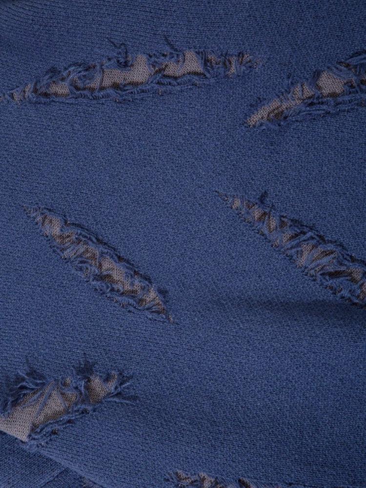 This unisex grunge sweater showcases a striking contrast colors design with distressed and ripped details. Perfect for punk and streetwear enthusiasts, it's a cool and casual choice for winter, also suitable for couples looking for a coordinated style.