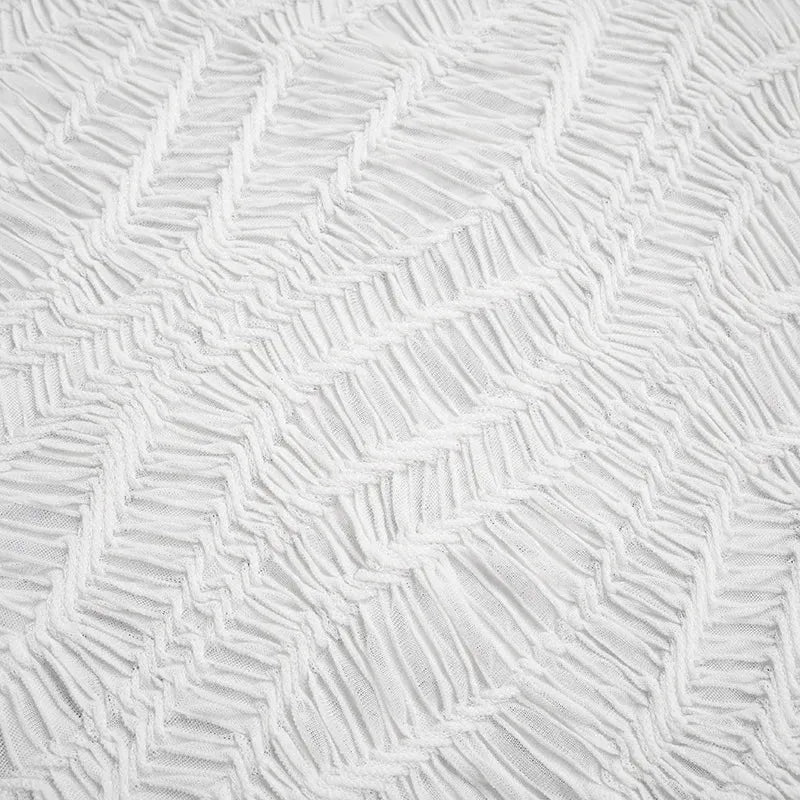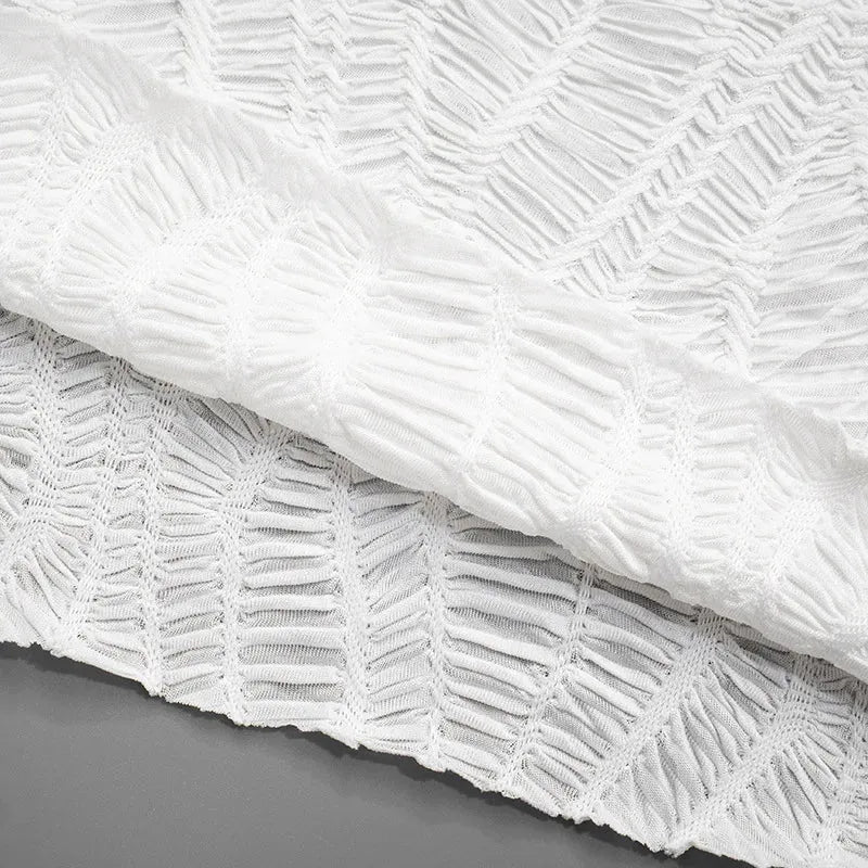 Texture meets tension in this wrinkled lace-up mini dress. The body-hugging fit and high neckline create clean drama, while the long ribbon tie adds that cool-girl energy. It's the perfect statement piece for your next night out or date night look.