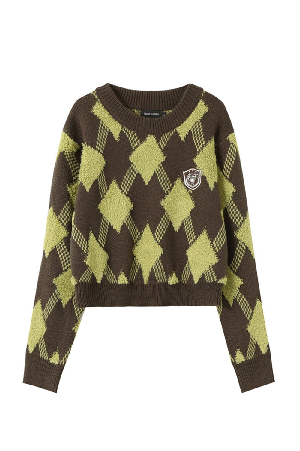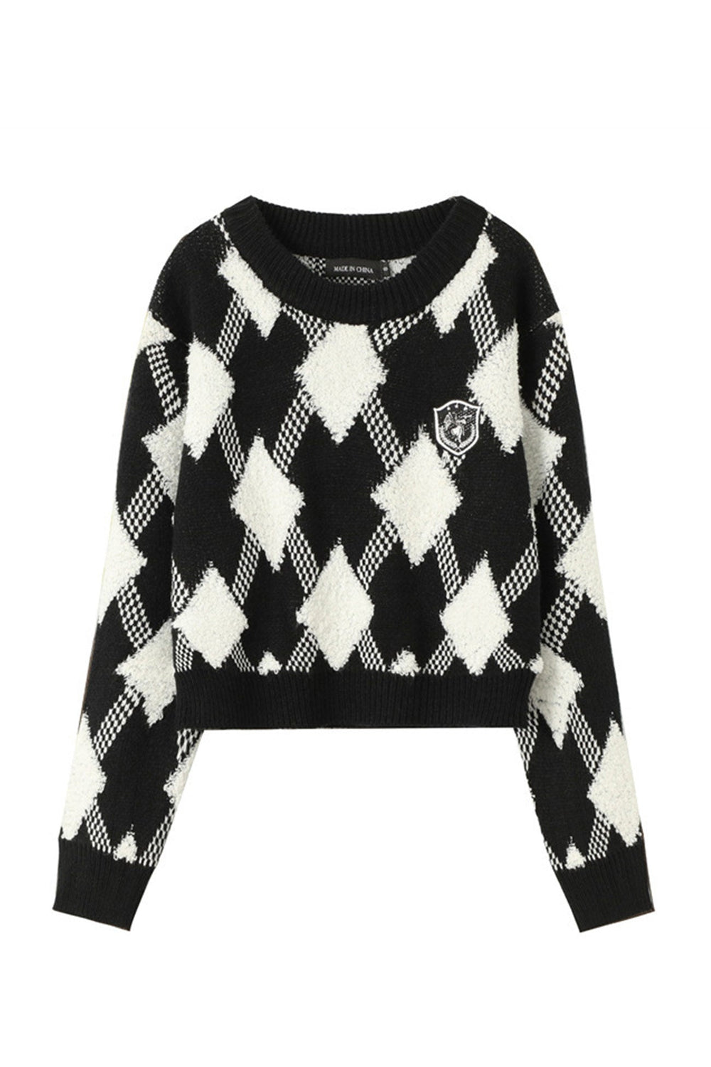 Increase quantity for Crew Neck Plaid Patchwork Sweater