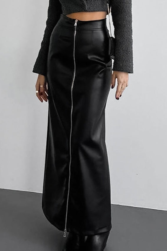 High-Waist Straight Zip Skirt