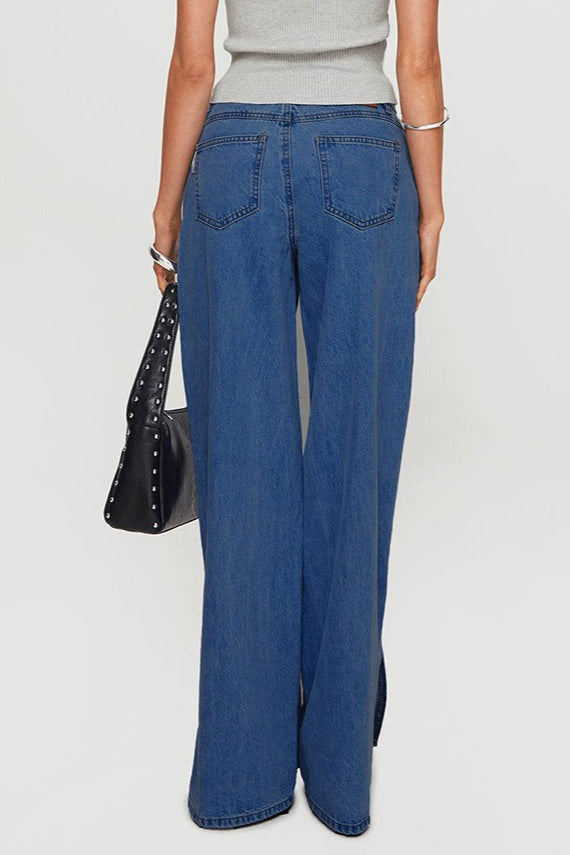 • Clothing Type: Wide Leg Pants • Waist Type: Low Waist • Composition: Cotton • Details: Slit
