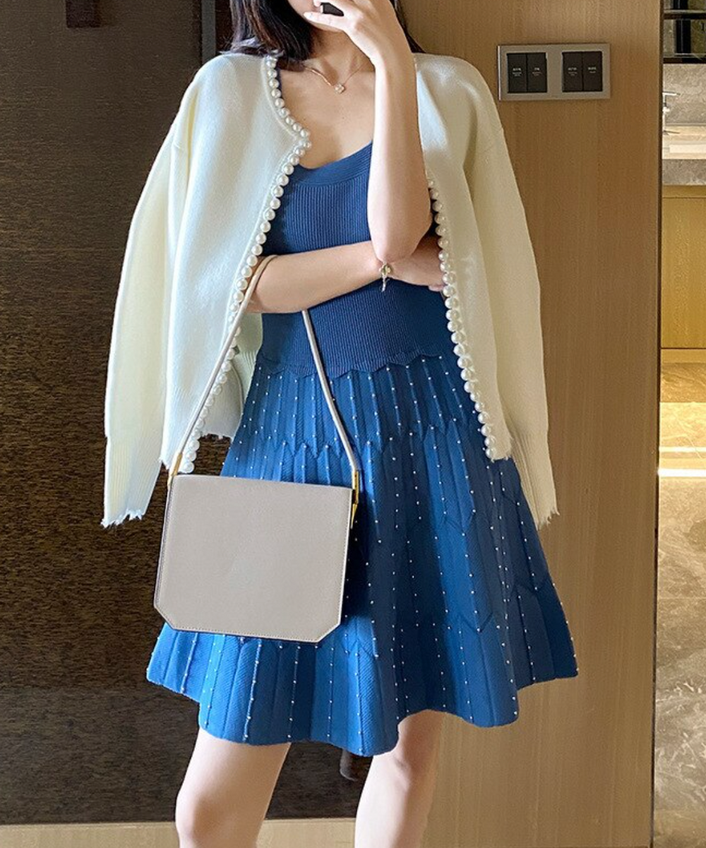 The ultimate in chic styling! Trimmed in oversized ivory pearls, the PER LA cardigan is timeless with the most coveted details of the season.