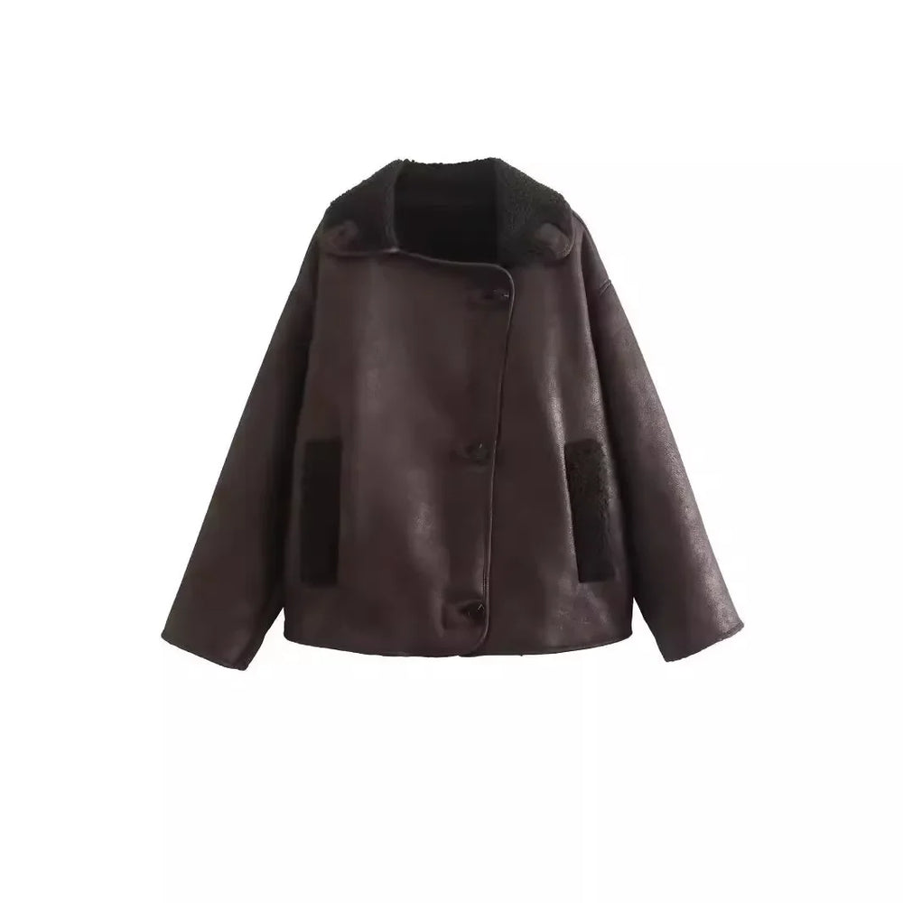 Thick Faux Leather Warm Wool Double-sided Plush Jackets