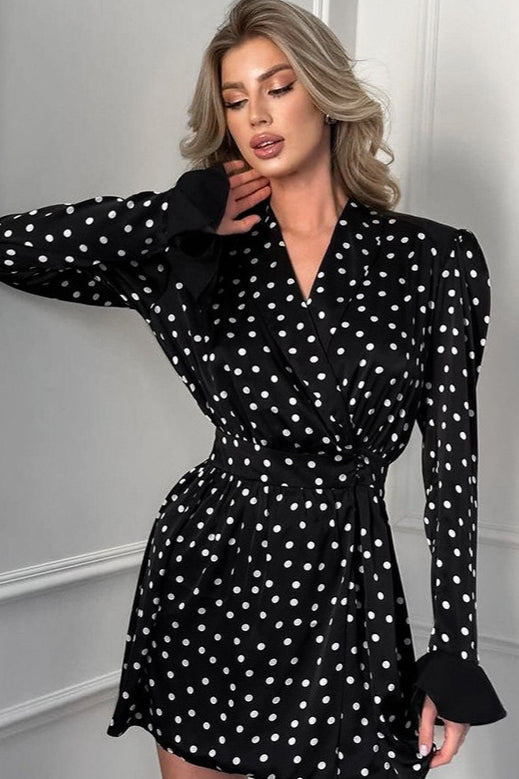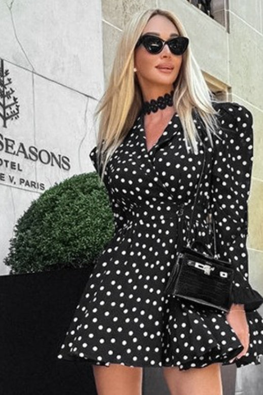V-Neck Puff Sleeve Polka Dot Mini Dress