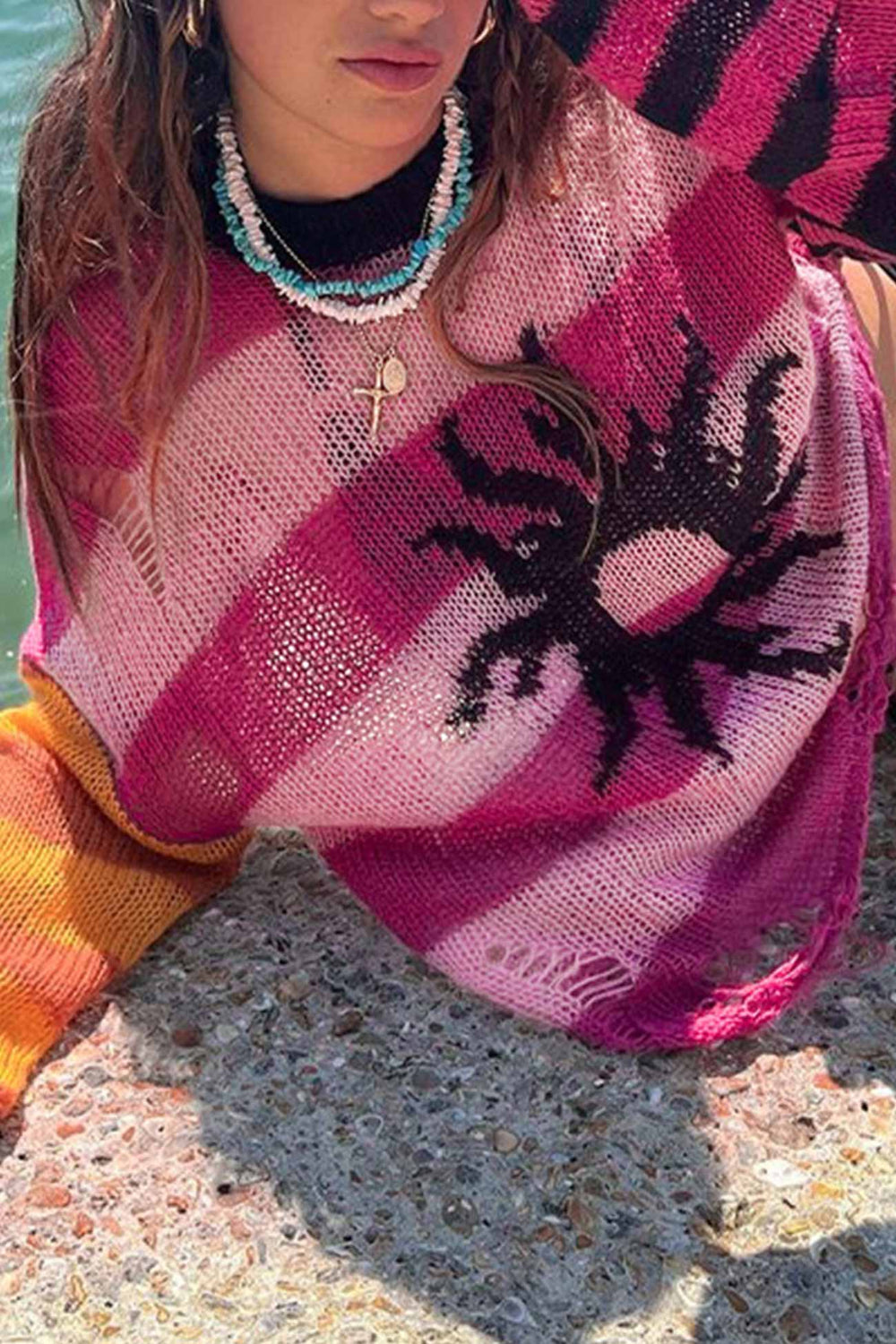Diminuer la quantité pour Pull délavé à rayures contrastées et patchwork