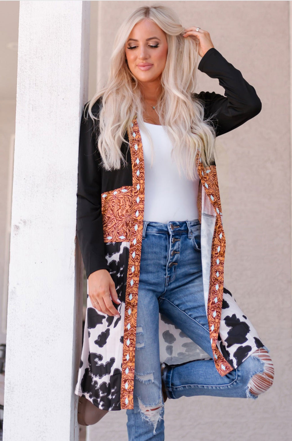 Augmenter la quantité pour Cardigan ouvert patchwork à imprimé vache