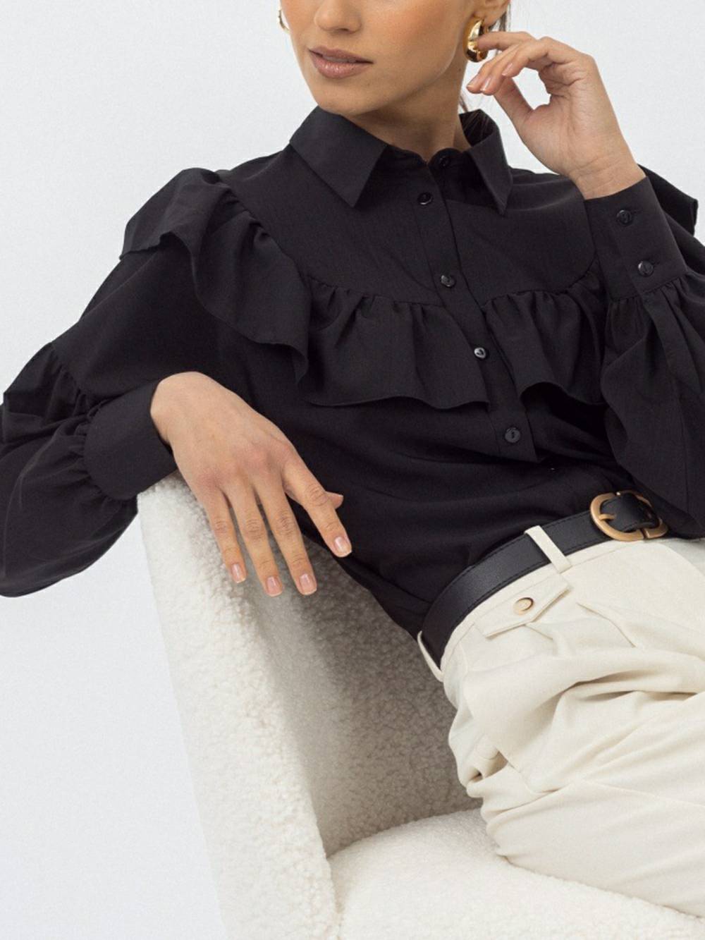 Ruffled Women Shirt Solid Slim Office Lady Frill Shirt