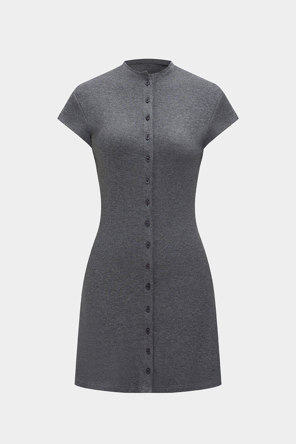 Solid Color A-Line Button Short Sleeve Mini Dress