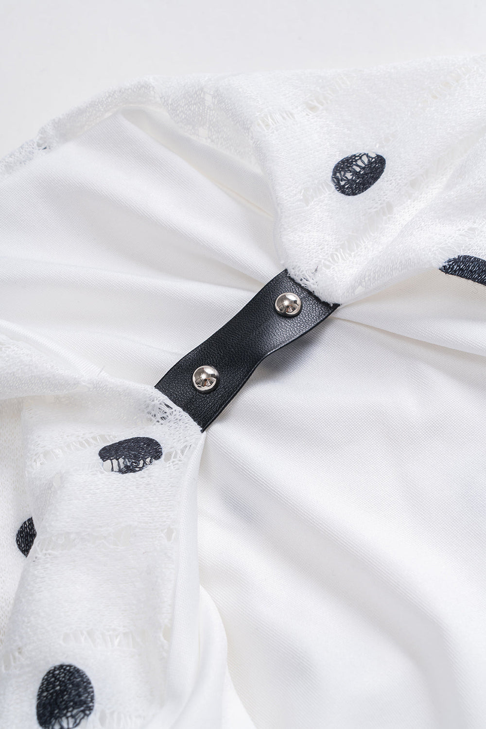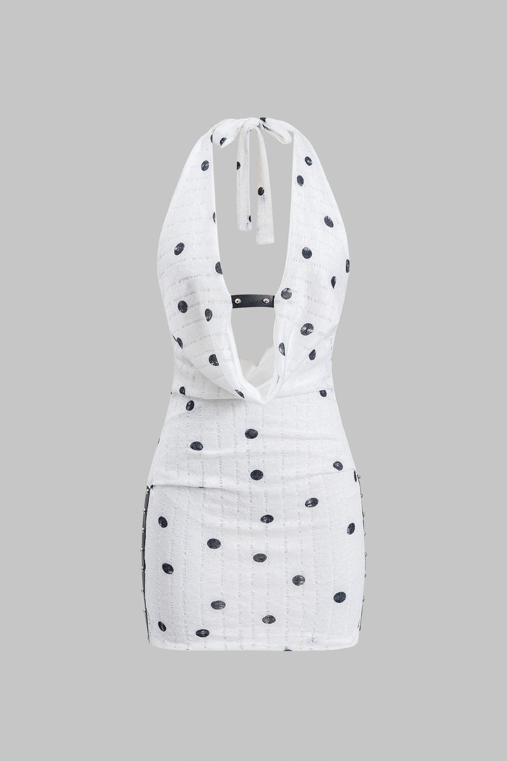 Polka Dots Pattern Lace Ruched Halter Neck Tie Up Backless Mini Dress