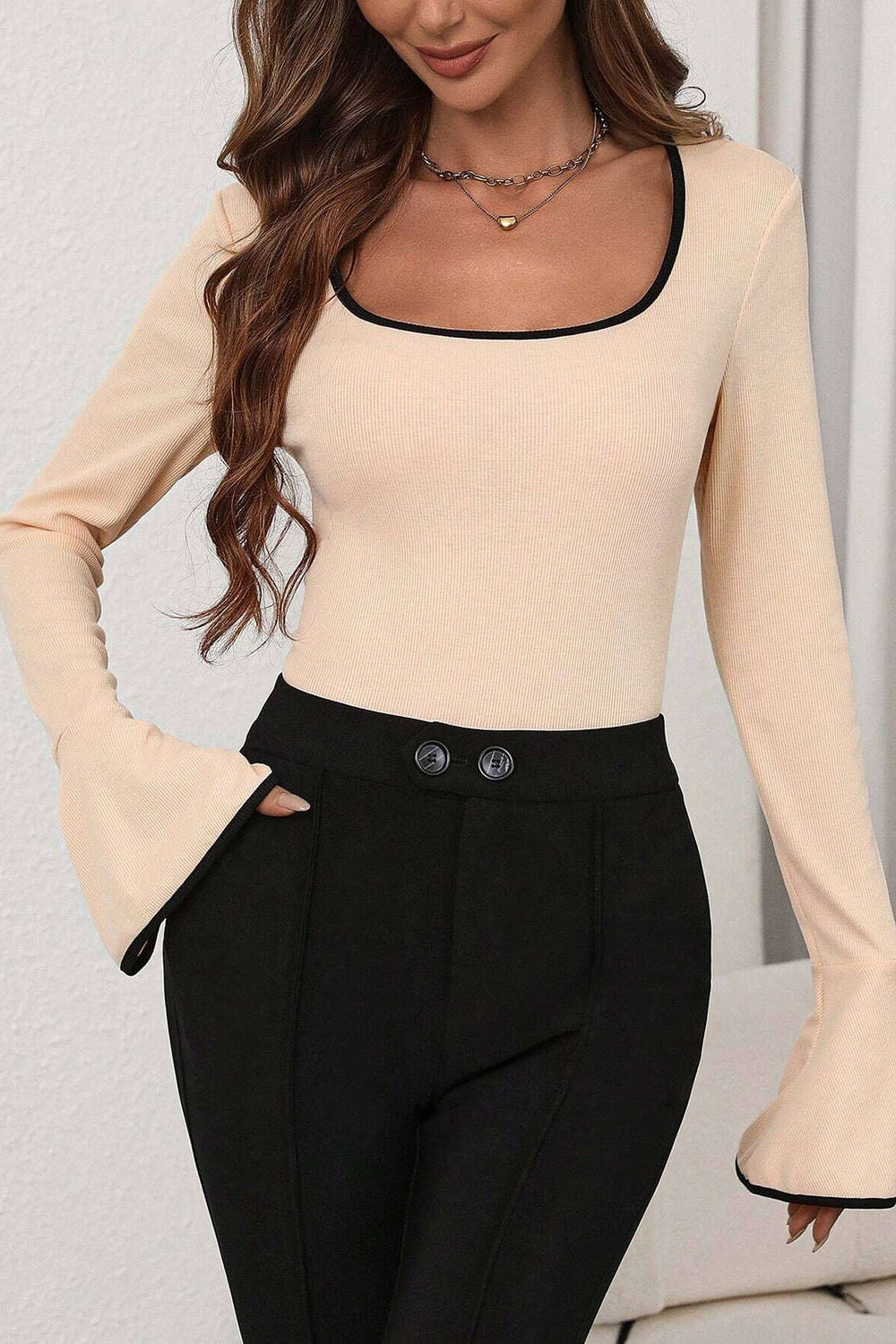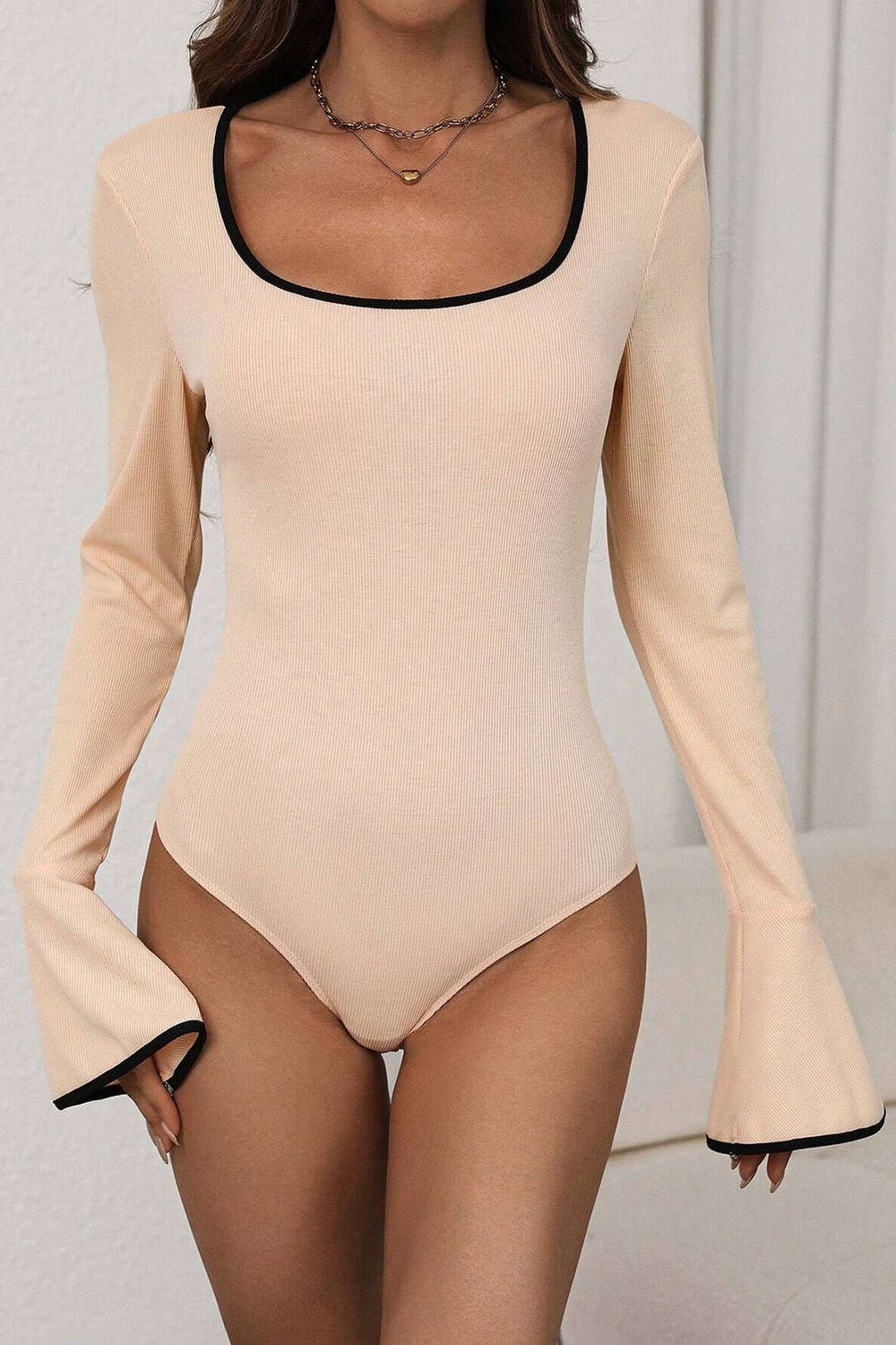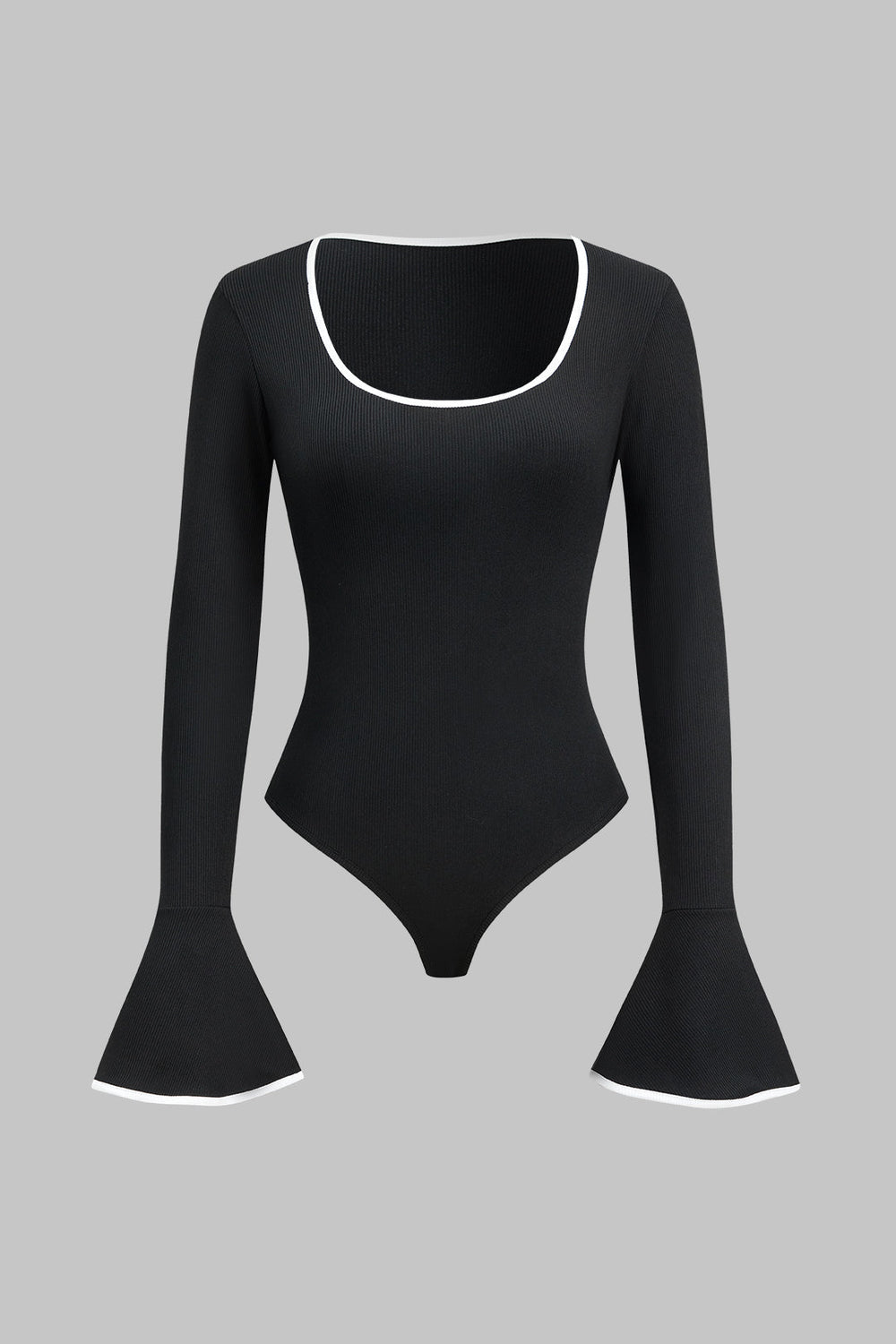 Contrast Binding Long Sleeve Bell Sleeve Bodysuit