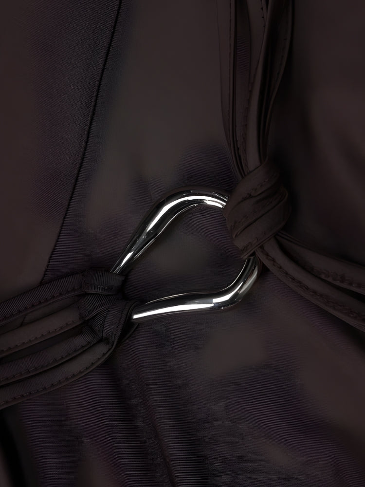 Élégante, sensuelle et résolument tendance. Cette mini-robe à épaules dénudées revisite l'esprit grunge avec une touche de modernité. Son corsage ajusté, son ourlet asymétrique et sa ceinture en corde ornée d'une boucle métallique en font la pièce idéale pour un style affirmé sans effort.