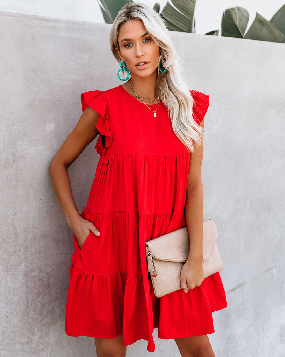 Make the East Coast Pocketed Tiered Babydoll Dress your spring/summer go-to! This lightweight number is cut with a crew neckline and ruffled short sleeves. Fashioned with a tiered and gathered skirt that adds extra texture and body! Simple. sweet and playful! The side pockets detail this to a T. Style with espadrille sandals and layered jewelry for an elevated look. or keep it casual with slides! Complete with a neckline closure.Styled with our Sugar Rim Beaded Statement Earrings. Saint Christopher Necklace. Chloe Mini Necklace. Cooper Block Heeled Sandal. and Stella Crossbody Envelope Zip Clutch.