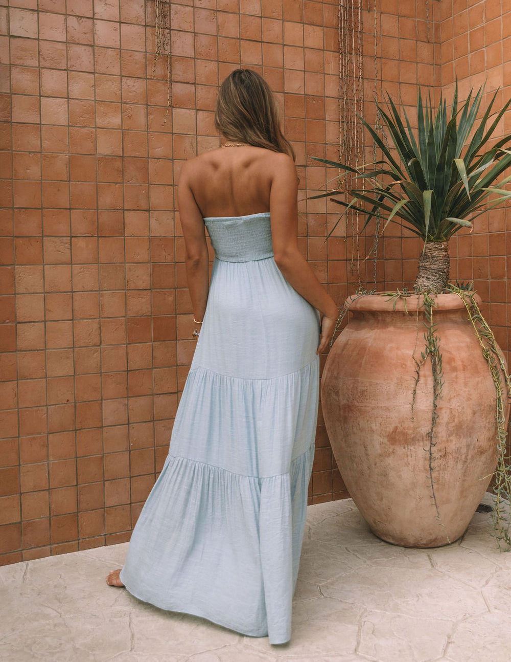 //Meilleure vente// Nouvelle couleur// La robe longue bustier Hattie à poches et nœud sur le devant est idéale pour les événements estivaux ! Cette robe longue bustier à imprimé nénuphar présente une coupe cintrée et évasée avec un nœud ajustable au niveau de la poitrine. À porter avec le collier pendentif Coasta à plusieurs rangs, le bracelet perlé Memorable, le bracelet perlé Glimmer et le sac Highland.