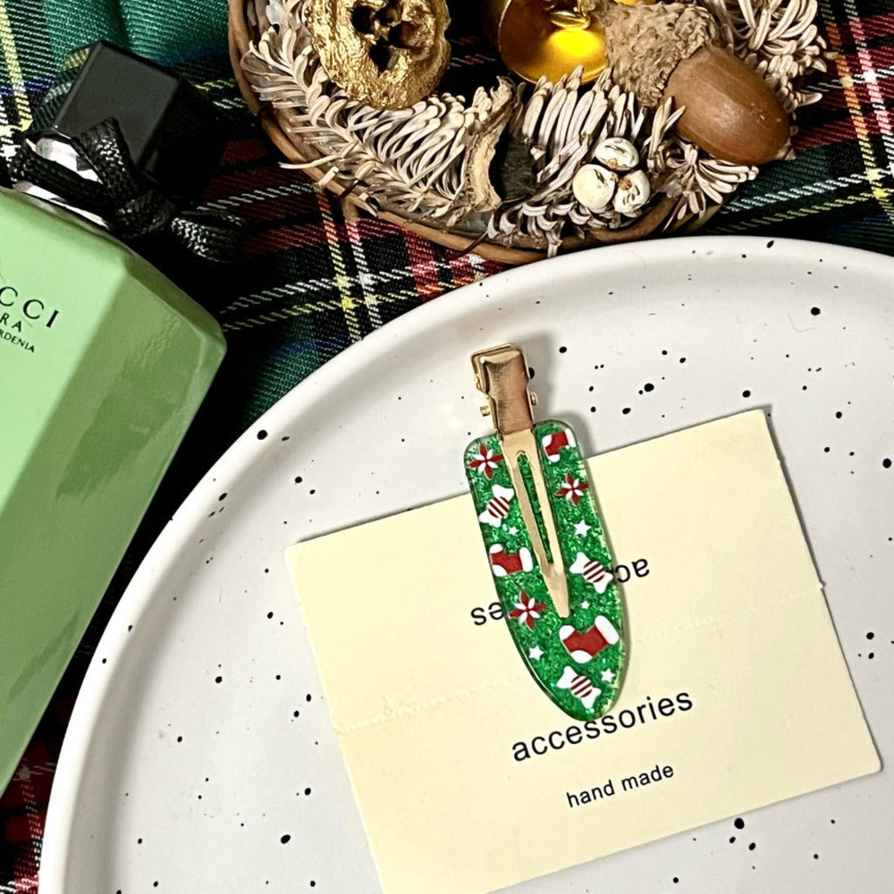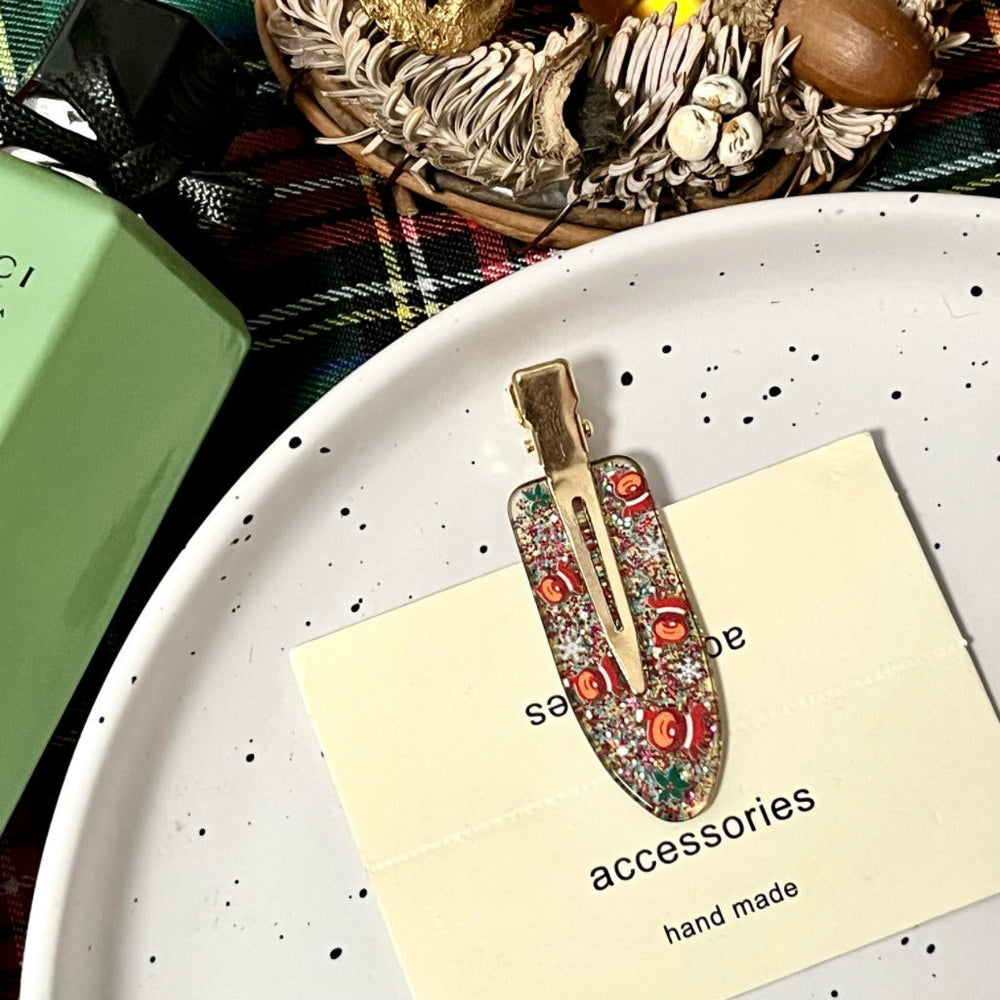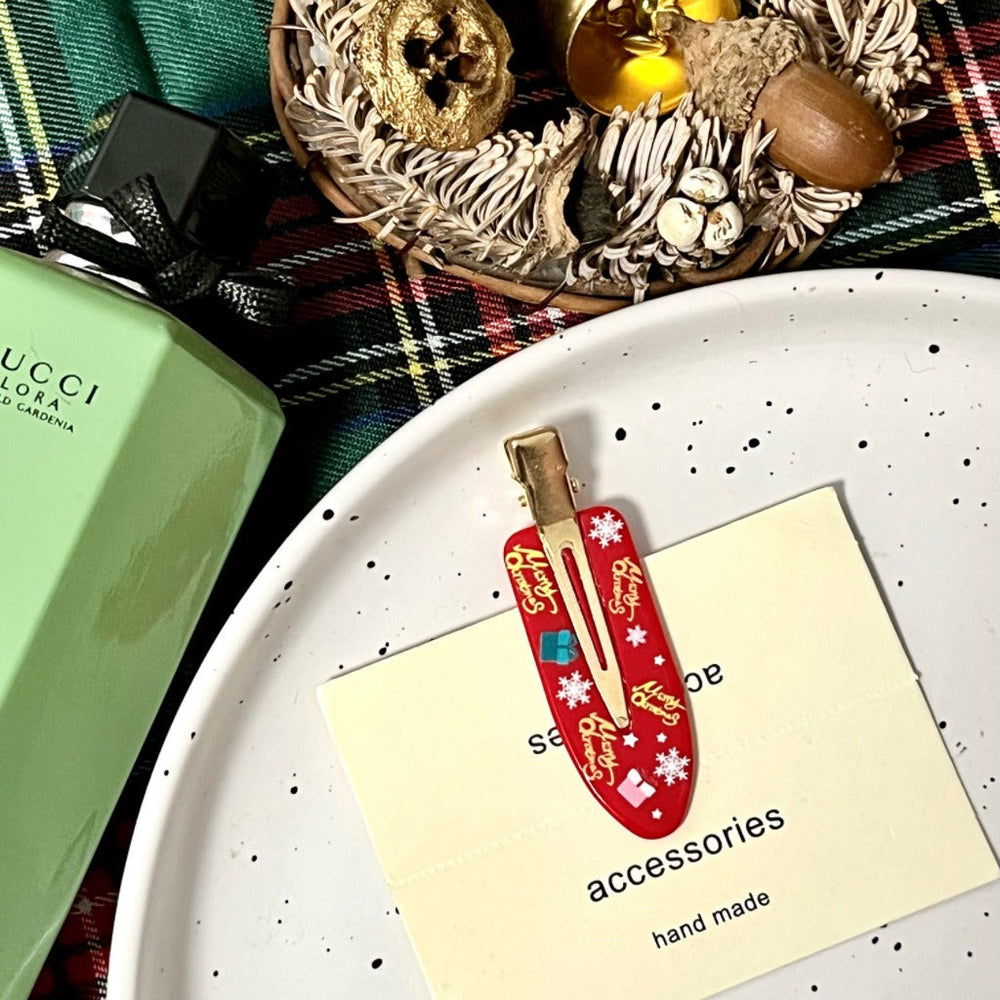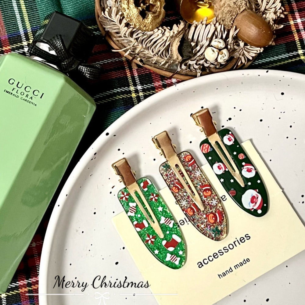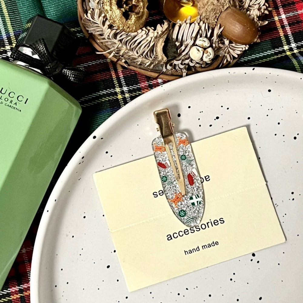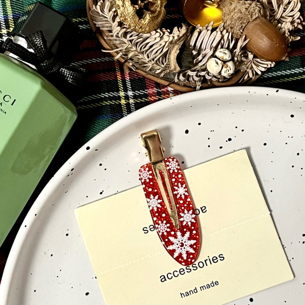 • Matière : Acrylique • Artisanat : Fait main • Motif : Style luxe léger • Détails : Flocons de neige, boîtes cadeaux de Noël, orignal, cloches de Noël, Père Noël • Matériau d'incrustation : Non incrusté • Type : Pince à frange