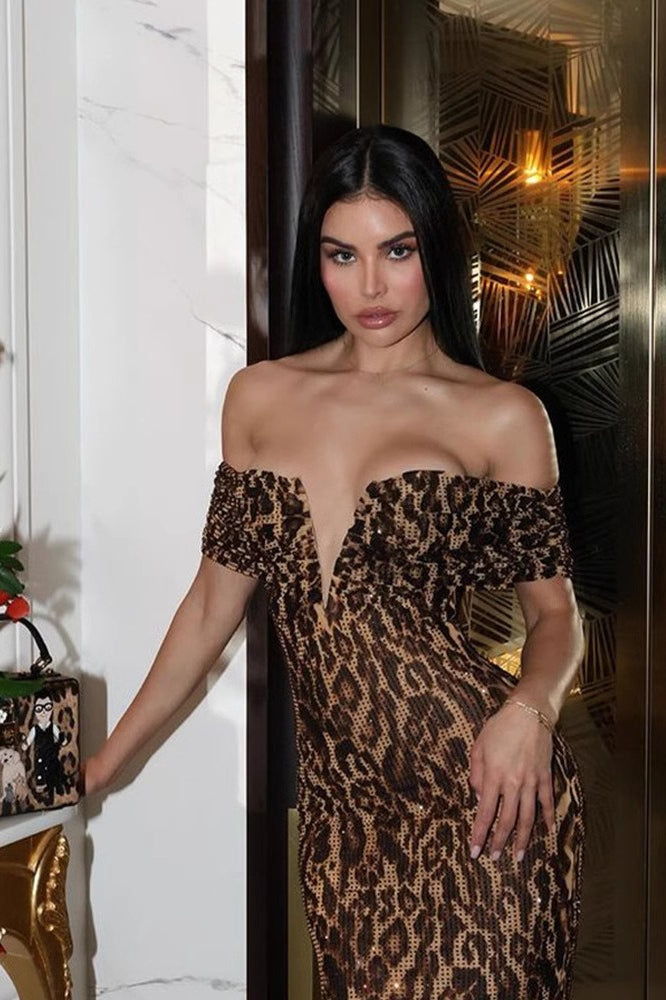 • Details: Sequins, Shoulder-Baring