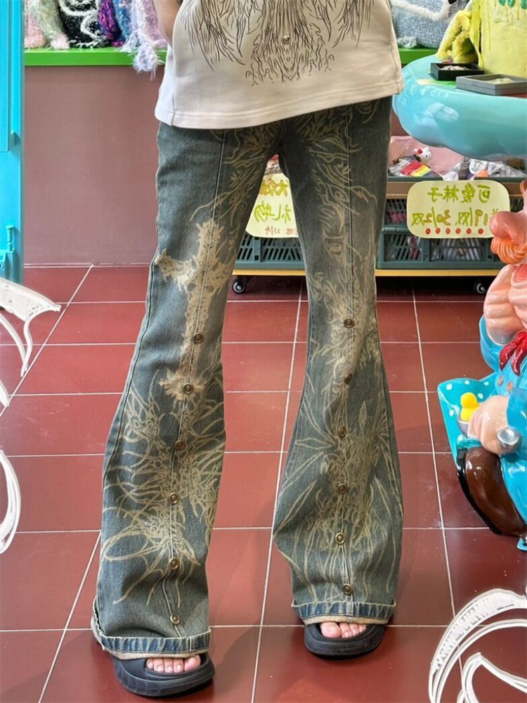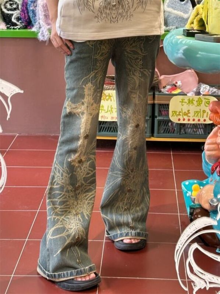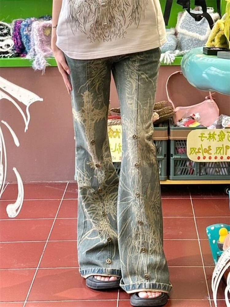 Jean évasé vintage pour femme, imprimé rétro, pantalon slim, sexy et tendance, taille haute, style punk Harajuku décontracté.