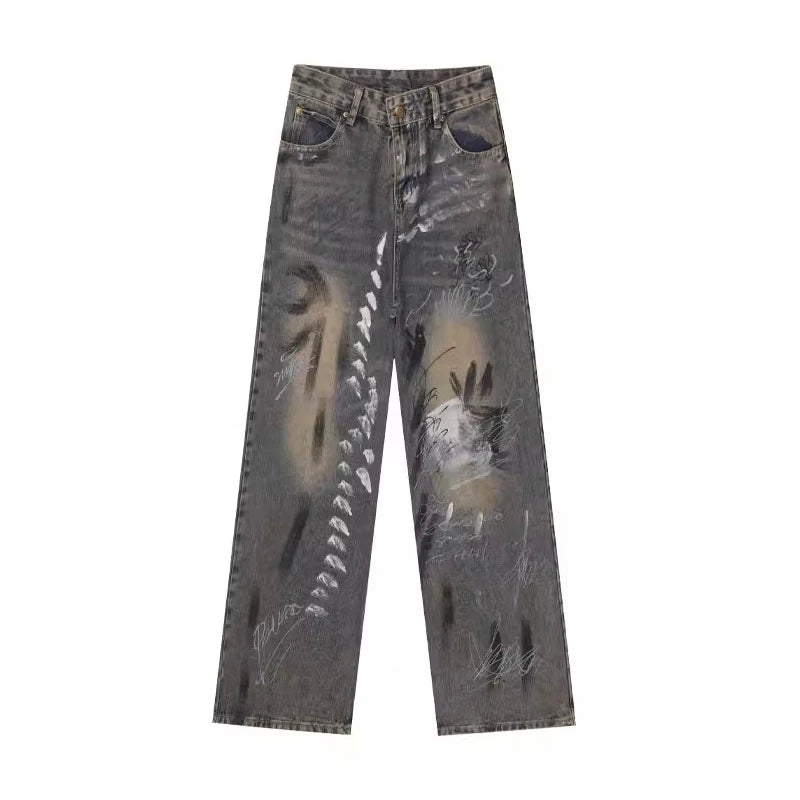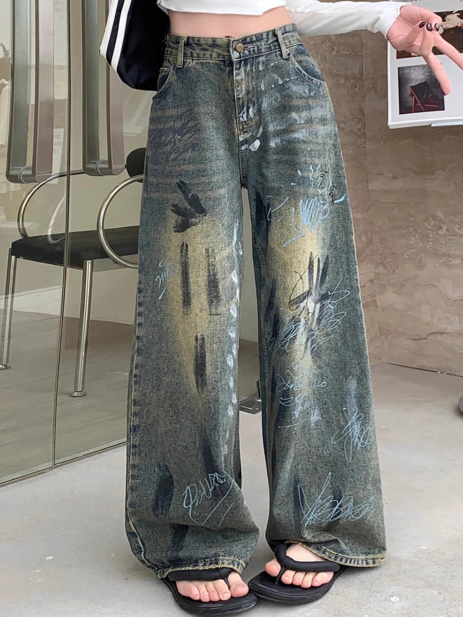 Pantalon baggy taille haute style graffiti vintage Y2K