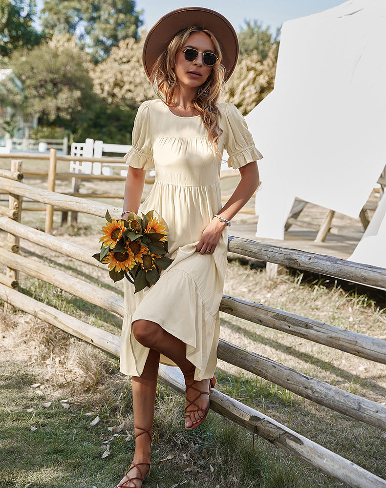 Soyez irrésistible le dimanche dans notre robe longue Vinyasa à pois suisses et smocks ! Cette robe crème à pois suisses est ornée d'un buste smocké et de volants. La jupe est semi-doublée. Un look résolument féminin ! À accessoiriser avec les boucles d'oreilles Perfect Hoop, le mini collier Chloe, le collier pendentif Ritual, les chaînes Zoe, le bracelet jonc simple et la barrette à nœud Loxie.