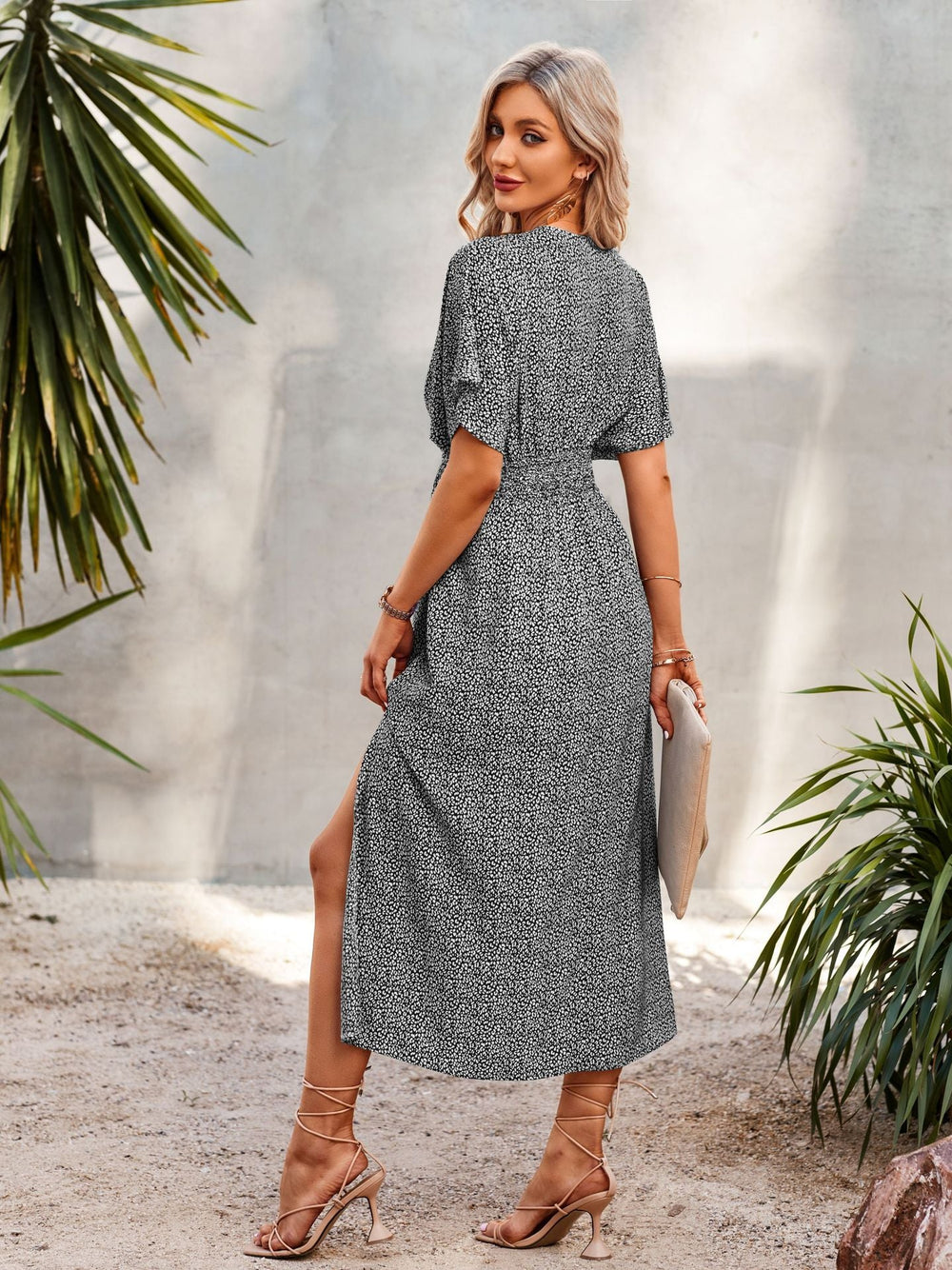//Meilleure vente// Notre robe kimono maxi imprimée Woodloch, ajustable, offre une allure décontractée et légère ! Ce kimono imprimé violet et mauve présente un décolleté en V et des manches kimono. Une taille élastiquée avec cordon et une fermeture boutonnée sur le devant ornent l'avant. À porter avec le ras-de-cou Circlet Disc, le sautoir Kika à chevrons superposés, le bracelet jonc simple, le sac à main en bois Maldives et les sandales à talons tressées Luci.